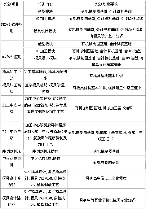 江蘇省模具技術培訓中心對外培訓項目
